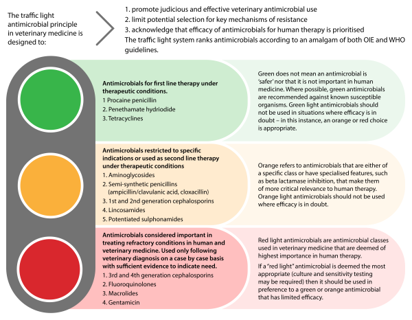 Antimicrobials considered important in treating refractory conditions in human and veterinary medicine. These will only be used following veterinary diagnosis on a case-by-case basis with sufficient evidence to indicate need.